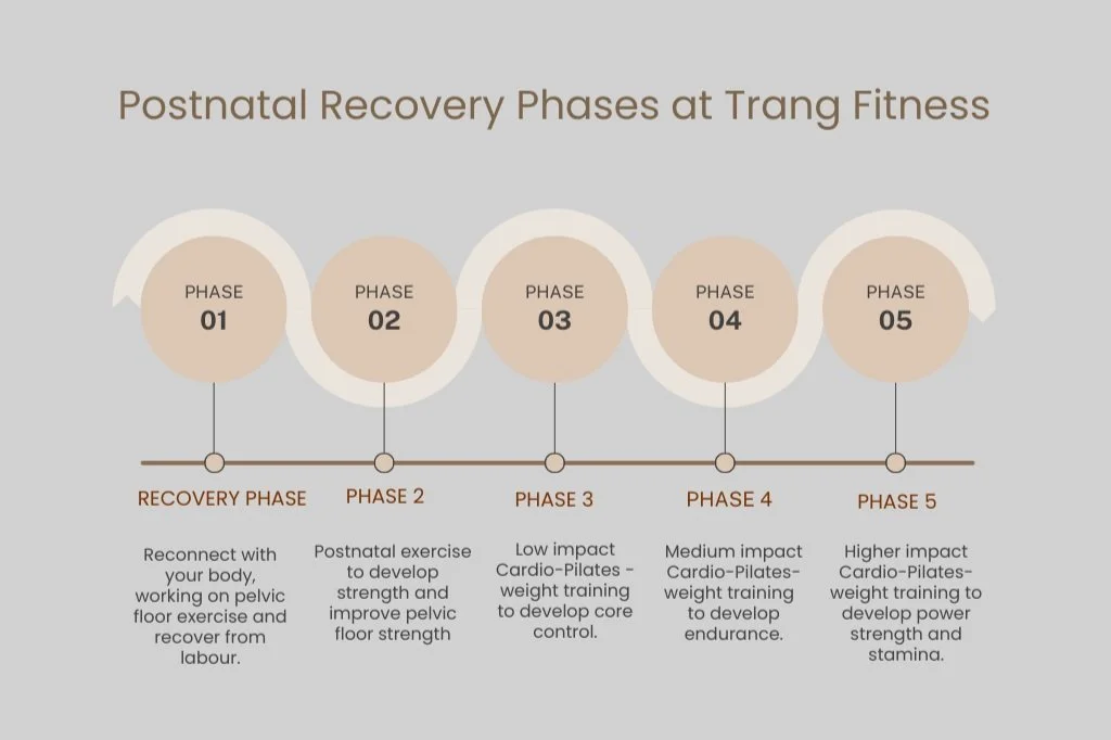 Regardless of your postpartum state, our Postnatal Recovery Training, which is separated into 5 phases, enables you to begin at a level that is safe for you and advance at your own pace. Trang created this plan after going through her own postpartum experience and training numerous ladies to get stronger after childbirth.